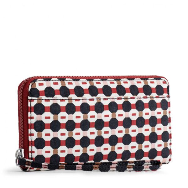 Alia is delightfully useful large wallet that?s bang up-to-date. There?s plenty of space inside this zip closure wallet with 12 card slots, 3 note sections and a zipped coin compartment. Carry it in your bag or use the wrist strap for nights out.