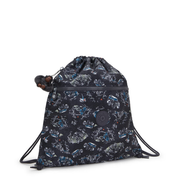 Supertaboo is a strong, colourful drawstring schoolbag with a roomy main compartment and comfy, padded shoulder straps. It also features zippered inner and outer pockets ? perfect for keeping important bits and bobs separate. Its water repellent material makes the Supertaboo a great choice for field trips and swimming kit.